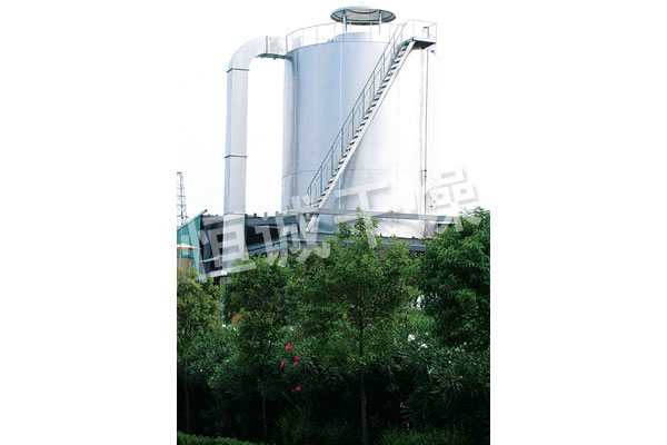 本機(jī)組工作過程為料液通過隔膜泵高壓輸入,噴出霧狀液滴,然后同熱空氣并流下降,大部分粉粒由塔底排料口收集,廢氣及其微小粉末經(jīng)旋風(fēng)分離器分離,廢氣由抽風(fēng)機(jī)排出,粉末由設(shè)在旋風(fēng)分離器下端的授粉筒收集,風(fēng)機(jī)出口還可裝備二級(jí)除塵裝置,回收率在96-98%以上。