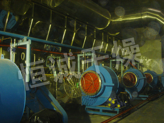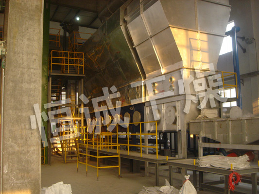潔凈的熱風(fēng)經(jīng)閥板分配進(jìn)入床體內(nèi),從加料器進(jìn)入的濕物料被熱風(fēng)形成沸騰狀態(tài)。由于熱風(fēng)與物料廣泛接觸,增強(qiáng)了傳熱傳質(zhì)的過程,因此在較短時(shí)間內(nèi)就可干燥。如用連續(xù)型,物料從床體的一頭進(jìn)入,經(jīng)過幾十秒至幾分鐘沸騰干燥,自動(dòng)從床體另一頭流出。本設(shè)備一般進(jìn)行負(fù)壓操作。