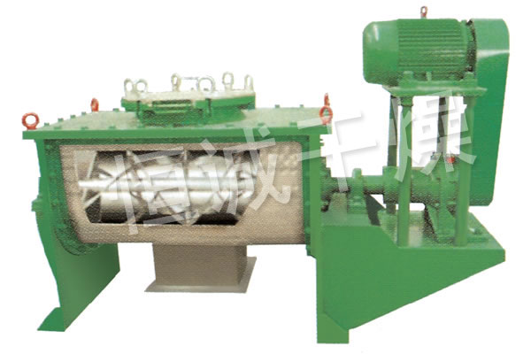 該機(jī)型由容器、螺旋攪拌葉片和傳動(dòng)部件組成:螺旋葉片一般做成雙層或三層,外層螺旋將物料從兩側(cè)向中央?yún)R集,內(nèi)層螺旋將物料從中央兩側(cè)輸送,形成對(duì)流混合。